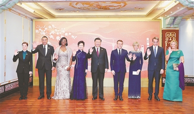 晚6時(shí)許,法國總統(tǒng)馬克龍夫婦、牙買加總理霍爾尼斯夫婦、希臘總理米佐塔基斯夫婦、塞爾維亞總理布爾納比奇等外方貴賓陸續(xù)抵達(dá)。習(xí)近平和彭麗媛同他們親切交流并合影留念。