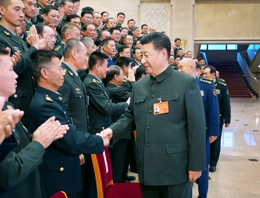 11月8日至10日,中央軍委基層建設會議在北京召開。中共中央總書記、國家主席、中央軍委主席習近平出席會議并發表重要講話。這是習近平親切接見會議代表。新華社記者 李剛 攝