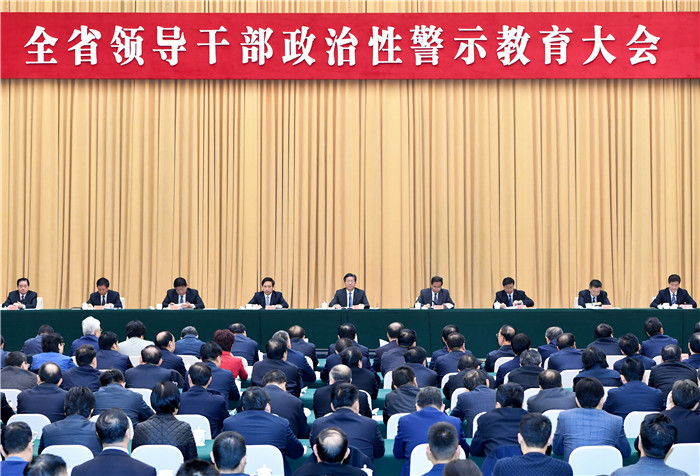 11月20日上午,全省領導干部政治性警示教育大會在石家莊舉行。省委書記、省人大常委會主任王東峰在會議上強調,要深入學習貫徹習近平總書記關于全面從嚴治黨重要論述和黨的十九屆四中全會精神,認真落實省委九屆九次全會部署,緊密結合開展“不忘初心、牢記使命”主題教育,增強“四個意識”,堅定“四個自信”,做到“兩個維護”,以案為鑒、舉一反三,進一步壓緊壓實各級黨組織管黨治黨政治責任,建立健全一體推進不敢腐、不能腐、不想腐的體制機制,完善治理體系,提高治理能力,齊心協力推動全面從嚴治黨取得新成效。