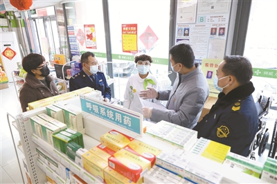 河北省石家莊市各級紀檢監察機關緊盯疫情防控和民生保障物資供應,督促相關部門加強對防疫用品、重要民生商品的市場價格監管,密切關注價格動態,維護市場秩序。圖為近日,該市長安區紀委監委聯合市場監管部門到連鎖藥店對藥品售價等情況進行監督檢查。