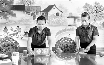 為倡導綠色、節約的飲食習慣,杜絕“舌尖上的浪費”,相關行業協會和部分餐飲企業紛紛行動起來,通過發布倡議書、引導顧客合理消費等方式,積極營造節約為榮、浪費可恥的餐飲風尚。圖為近日,河北省邢臺市南和區和陽鎮一家餐飲企業服務員在擺放提醒消費者節約、文明用餐的標識。 新華社發(張馳 攝)