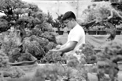 江蘇省沭陽縣積極倡導創業、創新、創優精神,實施促進創業帶動就業工程,吸引外出務工人員返鄉創辦企業,振興鄉村經濟,該縣農村去年僅花木銷售就創收200億元。圖為返鄉創業者周王成在沭陽縣新河鎮周圈村的工作室內修剪盆景。新華社記者 李博 攝