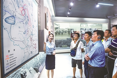 人們在陳列館聽講解員講述紅軍四渡赤水的故事。新華社記者 陶亮 攝