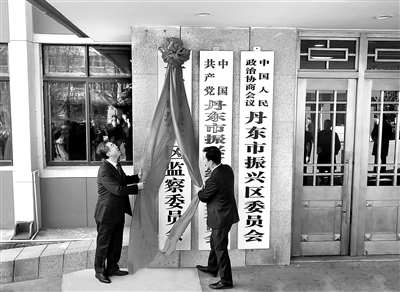 黨的十九大吹響了深化國家監(jiān)察體制改革試點(diǎn)工作的號(hào)角。2017年12月1日,遼寧省丹東市率先在全國成建制完成縣級(jí)監(jiān)察委員會(huì)組建工作。圖為丹東市振興區(qū)監(jiān)察委員會(huì)揭牌儀式現(xiàn)場。于浩洋 攝