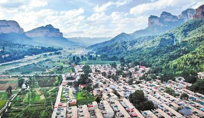 圖為被太行山環抱的武安市樓上村。近年來,武安市依托獨特的太行山美景,以“山居戲鄉”為主題,采取“旅游+”“文化+”模式,打造了集游、購、娛為一體的精品戲曲小鎮,吸引了眾多游客前來觀光,樓上村走出一條特色致富路。 河北日報記者 張 昊攝