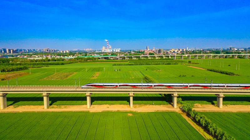 黨的十八大以來,是扎實推進創新發展的十年。高速鐵路、5G網絡等建設世界領先,載人航天、火星探測等領域實現重大突破。圖為行駛中的智能復興號動車組。 (圖片來源:視覺中國)