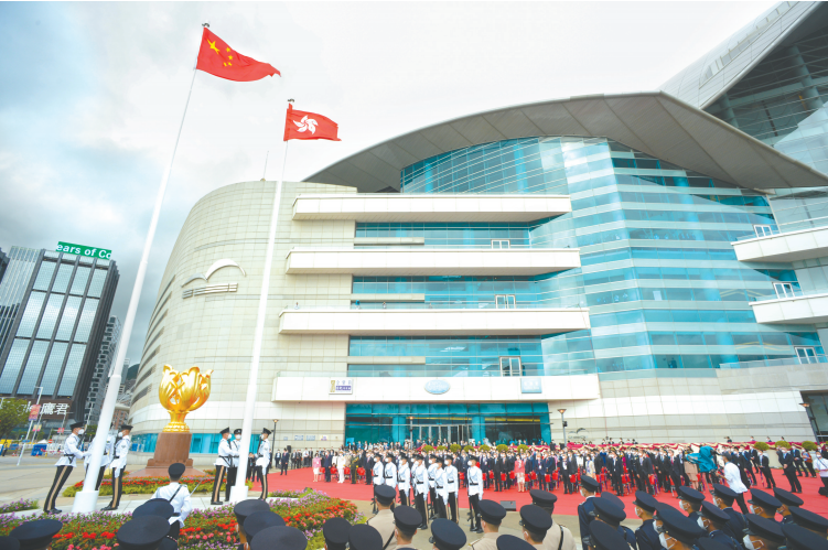 7月1日,香港特區政府在金紫荊廣場舉行升旗儀式,慶祝香港回歸祖國25周年。新華社發