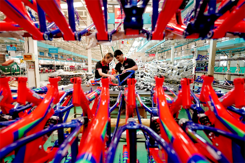 平鄉縣一家自行車、童車生產企業的員工在組裝車架。平鄉縣以園區建設為依托,通過企業整合、搭建科技研發平臺等措施,推動自行車、童車產業提檔升級。目前,平鄉自行車、童車及相關產品遠銷60多個國家和地區。新華社記者 牟宇 攝