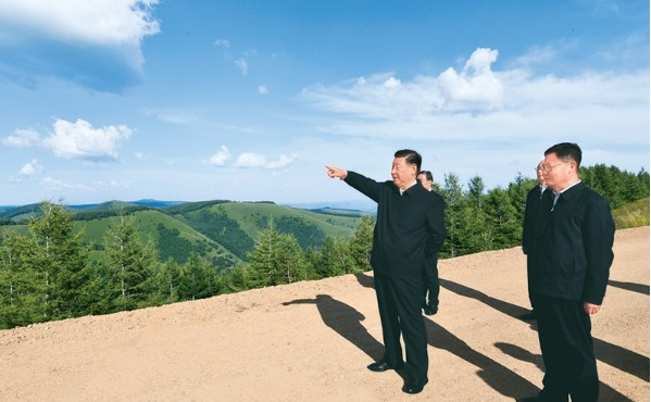 2021年8月23日至24日,中共中央總書記、國家主席、中央軍委主席習近平在河北省承德市考察。這是23日下午,習近平在塞罕壩機械林場月亮山考察。 新華社記者 謝環馳/攝