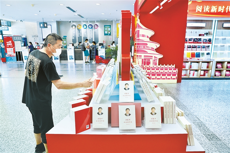 在全黨全社會迎接黨的二十大勝利召開之際,中央宣傳部(國務(wù)院新聞辦公室)會同中央黨史和文獻研究院、中國外文局編輯的《習(xí)近平談治國理政》第四卷,由外文出版社以中英文版出版,面向海內(nèi)外發(fā)行。圖為《習(xí)近平談治國理政》第四卷在北京圖書大廈上架銷售。(圖片來源:人民視覺)