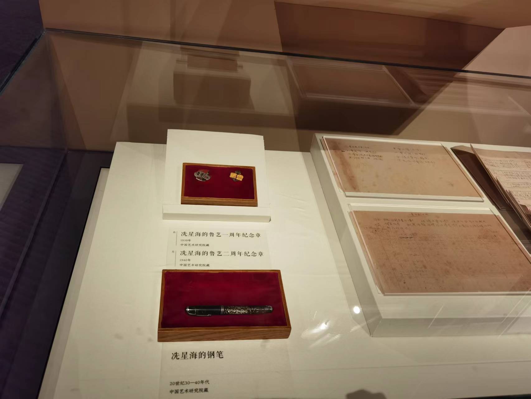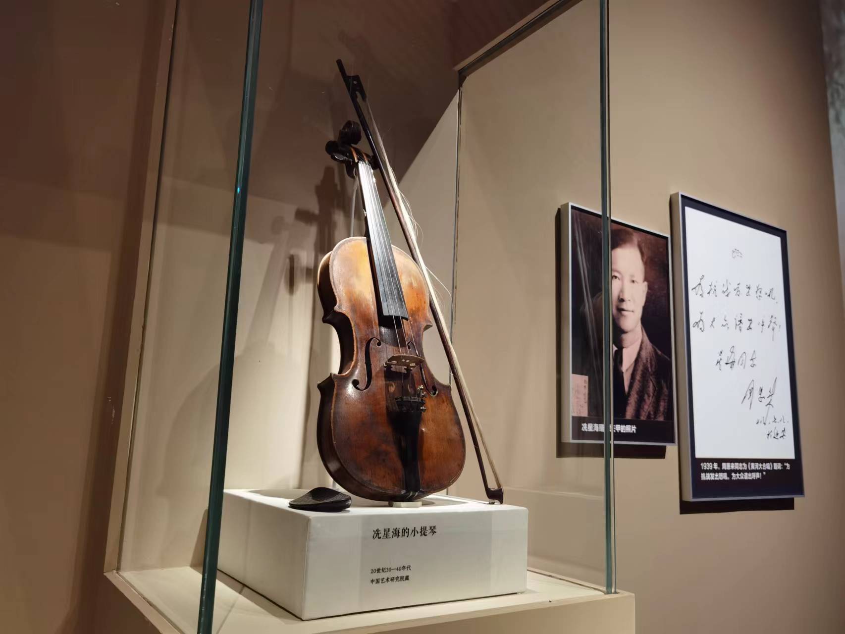 當(dāng)時(shí)的魯藝匯聚了一大批來自文學(xué)、戲劇、音樂、美術(shù)等領(lǐng)域的藝術(shù)家,冼星海便是其中一位。跟隨講解員的腳步,一把冼星海曾經(jīng)拉過的小提琴出現(xiàn)在記者眼前。小提琴下方,還陳列著冼星海用過的鋼筆以及《黃河大合唱》簡譜。