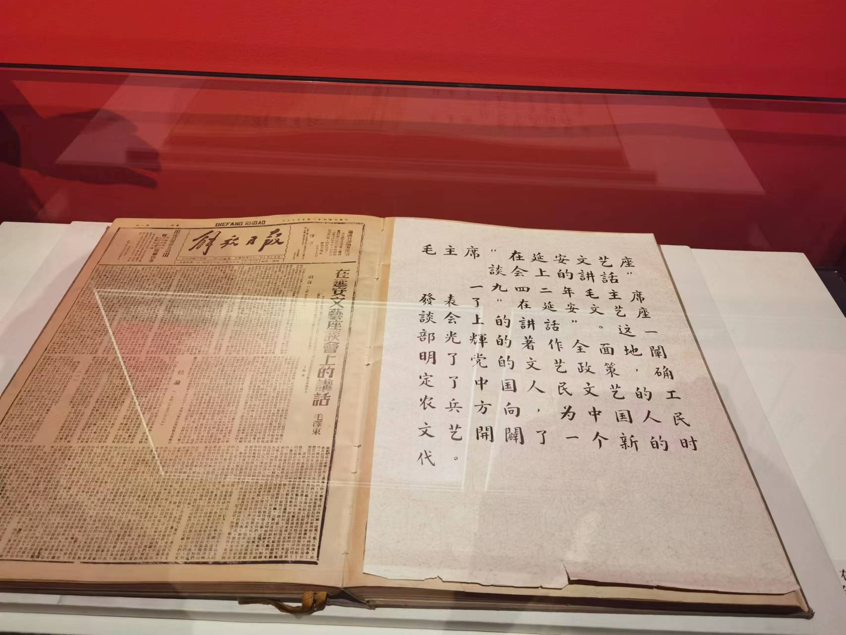“毛澤東同志的這次重要講話發(fā)表后,被翻譯成50多個(gè)國家的文字,在全世界范圍內(nèi)都產(chǎn)生了巨大影響,它就像是一座燈塔為我國革命文藝和社會(huì)主義文藝指明了方向。”講解員說。