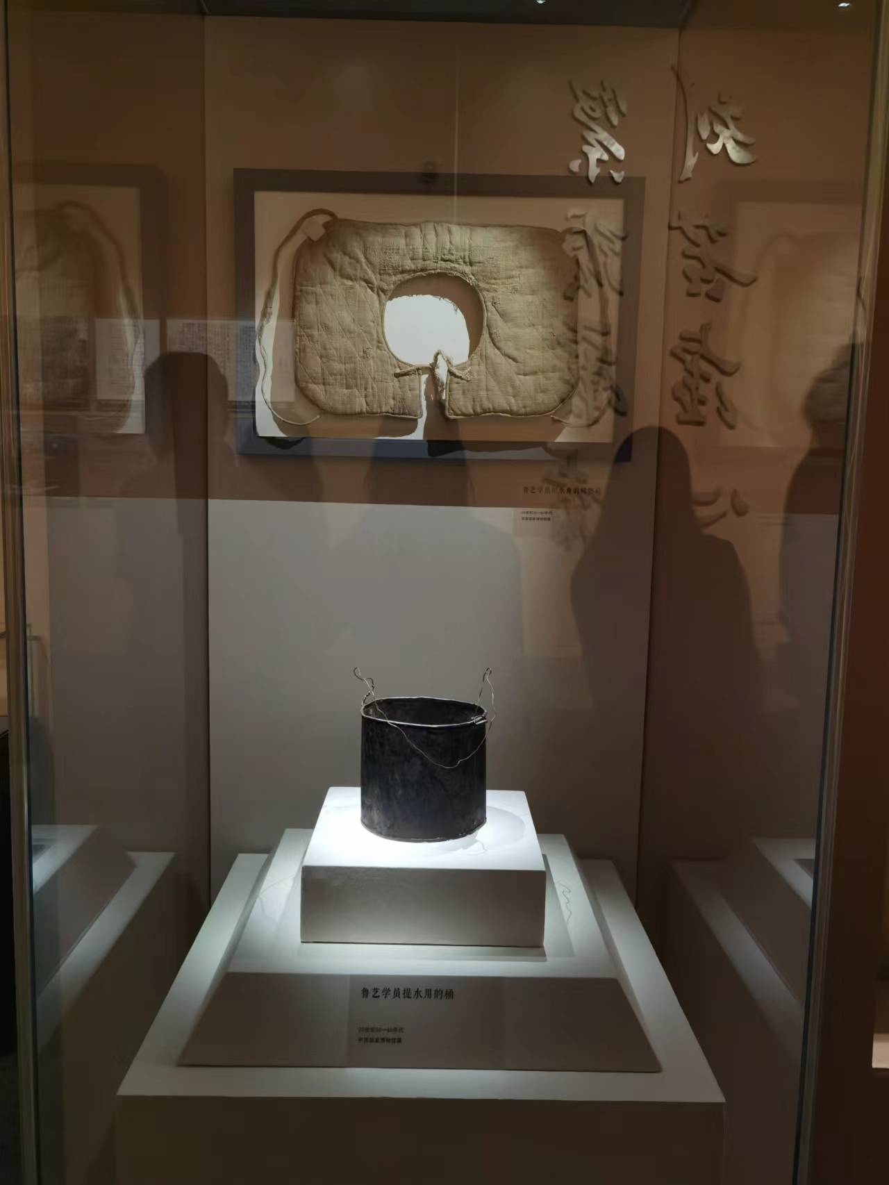 1938年4月10日,魯迅藝術(shù)學(xué)院在延安成立。這是抗日戰(zhàn)爭(zhēng)時(shí)期中國共產(chǎn)黨為培養(yǎng)抗戰(zhàn)文藝干部和文藝工作者而創(chuàng)辦的一所綜合性文學(xué)藝術(shù)學(xué)校,1940年更名為“魯迅藝術(shù)文學(xué)院”,簡稱“魯藝”。展覽上,一組展現(xiàn)魯藝學(xué)員學(xué)習(xí)生活的黑白照片以及魯藝學(xué)員擔(dān)水用的棉墊肩、提水用的桶等實(shí)物,將參觀者帶回那個(gè)艱苦樸素卻又滿懷理想的年代。