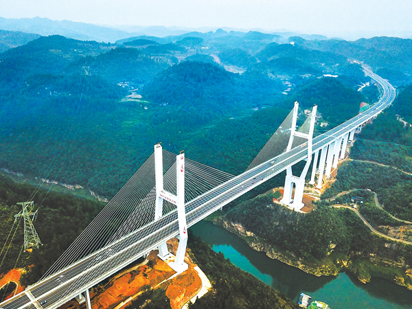 作為中國唯一沒有平原的省份,貴州在喀斯特高原上架起2萬余座橋梁,創(chuàng)造了數(shù)十個“世界第一”。這些橋梁,不僅是出山路、產(chǎn)業(yè)路、旅游路,更是人們擺脫貧困、奔向小康的致富路。圖為蘭海高速貴陽至遵義復(fù)線擴容工程楠木渡烏江特大橋。新華社記者 楊文斌 攝
