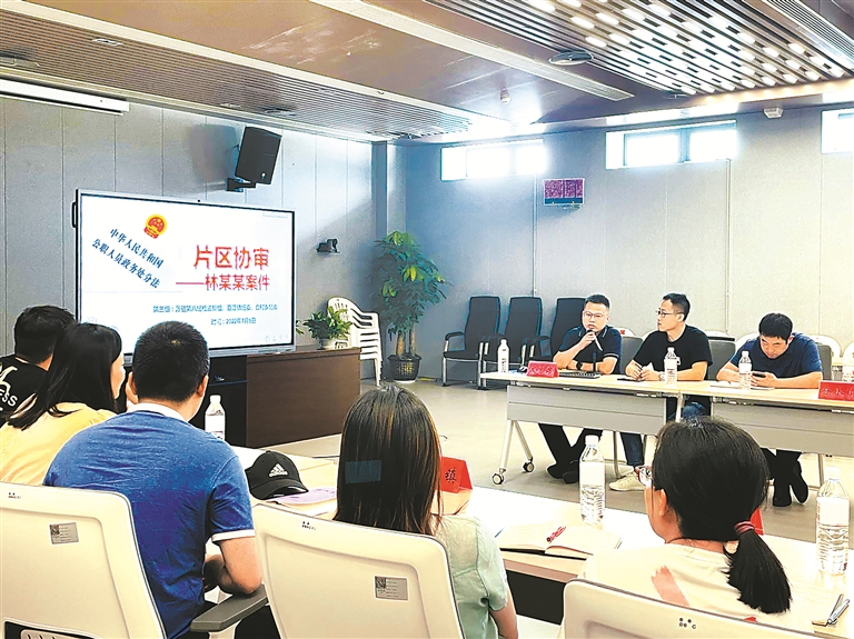 為提升案件辦理質(zhì)效,浙江省杭州市桐廬縣推行案件質(zhì)量“每案評查反饋、每季通報約談、每季片區(qū)協(xié)審”工作機(jī)制,對已辦結(jié)給予黨紀(jì)政務(wù)處分的案件逐一“體檢”。圖為該縣紀(jì)委監(jiān)委組織開展本年度第二期“實戰(zhàn)提能 片區(qū)協(xié)審”活動,各片區(qū)小組對相關(guān)單位上一季度辦理的案件進(jìn)行評查。楊靜 攝