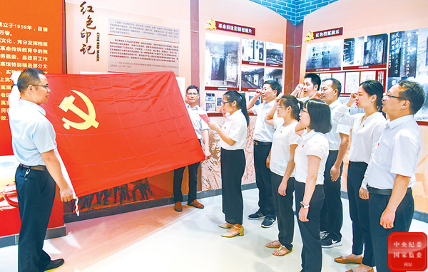 江西省上猶縣紀委監委堅持一體推進“三不腐”,監督推動各鄉鎮、部門(單位)履行好主體責任,將理想信念、紅廉教育、家風建設等融入基層黨日活動中,教育引導廣大黨員干部筑牢思想防線,增強拒腐防變能力。圖為近日,該縣黨員干部開展主題黨日活動,緬懷革命先烈、重溫入黨誓詞。楊文國 攝