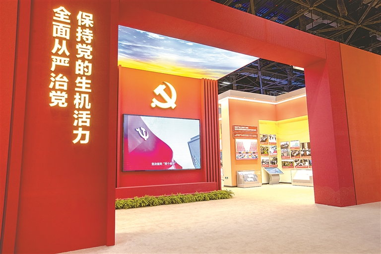 慶祝中國(guó)共產(chǎn)黨成立100周年大會(huì)當(dāng)日貼紙修改的請(qǐng)柬、中央八項(xiàng)規(guī)定展板、一部部黨內(nèi)法規(guī)文本構(gòu)筑起的“規(guī)”字……在3萬多平米的展區(qū)中洞察新時(shí)代10年的偉大變革,能夠清晰感受到黨加強(qiáng)自身建設(shè)、推進(jìn)自我革命的偉大實(shí)踐。