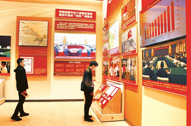 圖為近日,觀眾在“奮進新時代”主題成就展“全面從嚴(yán)治黨 保持黨的生機活力”展區(qū)參觀。本報記者 趙林 攝
