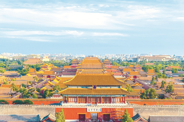 2022年11月28日,北京老城的中軸線遺產(chǎn)“全景圖”最新公開,遺產(chǎn)區(qū)包含15處遺產(chǎn)構(gòu)成要素,總面積約5.9平方公里。圖為從景山上俯瞰北京中軸線。(圖片來源:視覺中國)