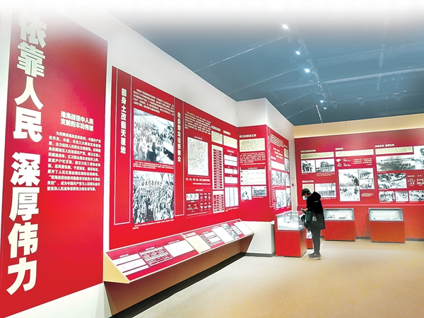 1月13日,觀眾在中國(guó)人民抗日戰(zhàn)爭(zhēng)紀(jì)念館參觀“人民的勝利——淮海戰(zhàn)役紀(jì)念館革命文物精品展”。(圖片來源:視覺中國(guó))