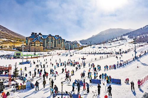 春節期間,眾多游客在崇禮太舞滑雪小鎮滑雪旅游。 太舞滑雪小鎮供圖