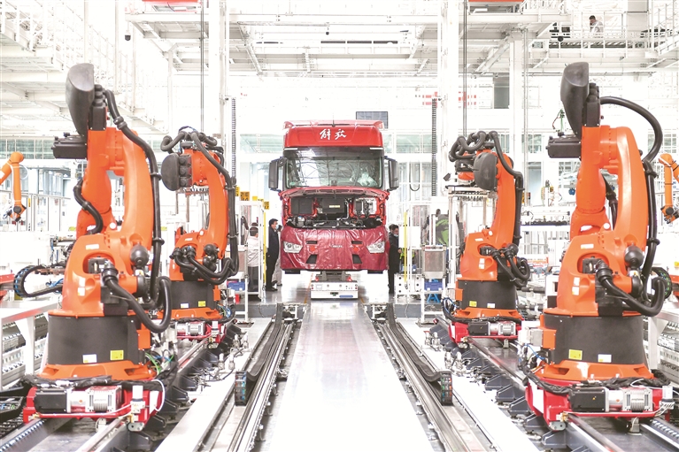 吉林省各地積極推動(dòng)企業(yè)生產(chǎn)、項(xiàng)目建設(shè),工地車間一派忙碌景象。1月31日,員工在長(zhǎng)春一汽解放J7智能工廠內(nèi)進(jìn)行整車裝配作業(yè)。新華社記者 許暢 攝