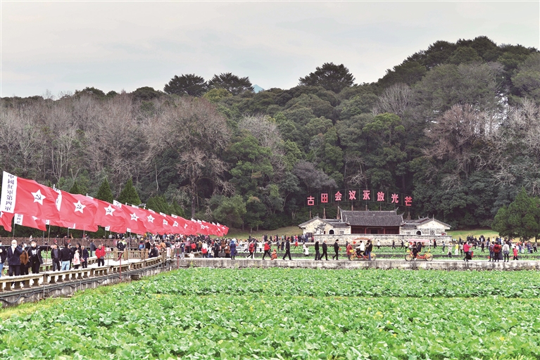 不忘初心方能行穩致遠,牢記使命才能開辟未來。圖為2023年1月26日,黨員干部群眾在福建省上杭縣古田鎮的古田會議會址參觀,汲取精神滋養。 中新社記者 張斌 攝