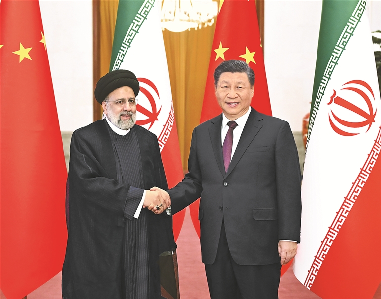 習近平指出,中伊兩國傳統友好,兩國關系經受住各種國際風云變幻考驗。面對當前世界之變、時代之變、歷史之變的復雜局面,中伊相互支持,團結協作,攜手抗擊新冠疫情,戰略互信不斷鞏固,務實合作穩步推進,促進了共同利益,維護了國際公平正義,譜寫了中伊友誼新篇章。中國正在以中國式現代化全面推進中華民族偉大復興,堅定不移推動高質量發展和高水平開放,堅定不移維護世界和平、促進共同發展。中方始終從戰略高度看待和發展中伊關系,無論國際和地區形勢如何變化,中方都將毫不動搖發展同伊朗的友好合作,推動中伊全面戰略伙伴關系不斷得到新發展,在百年未有之大變局中為世界和平和人類進步發揮積極作用。