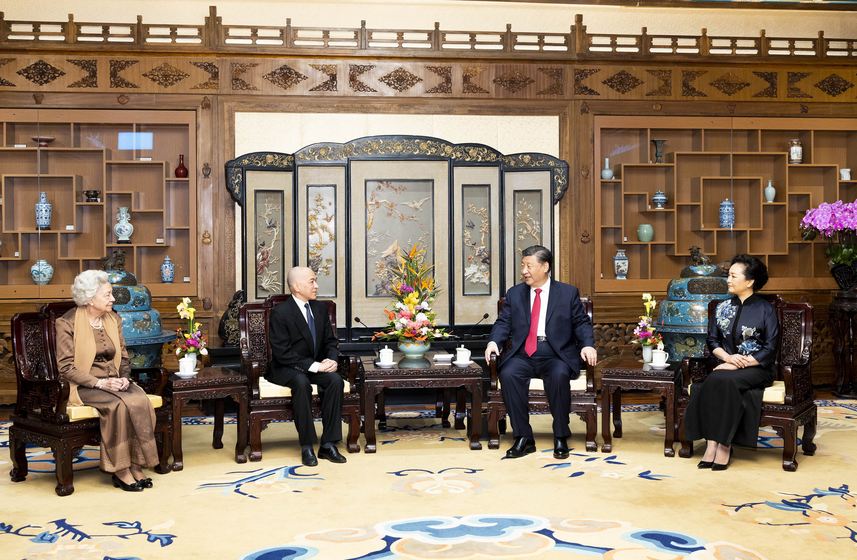 2月24日,國家主席習近平和夫人彭麗媛在北京釣魚臺國賓館養源齋親切會見柬埔寨國王西哈莫尼和太后莫尼列。 新華社記者 黃敬文 攝