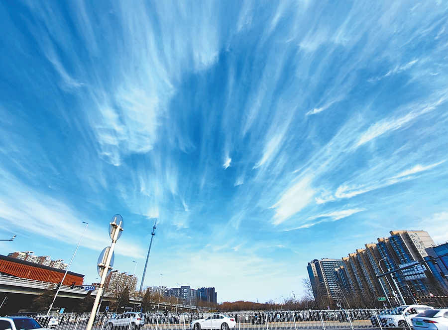 近日,北京天氣晴好,天空現“云追風”景觀。