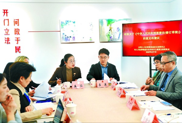 圖為2月7日,在上海虹橋街道古北市民中心召開的征詢會上,全國人大代表聽取相關人士對《中華人民共和國慈善法(修訂草案)》的意見和建議。新華社記者 劉穎 攝
