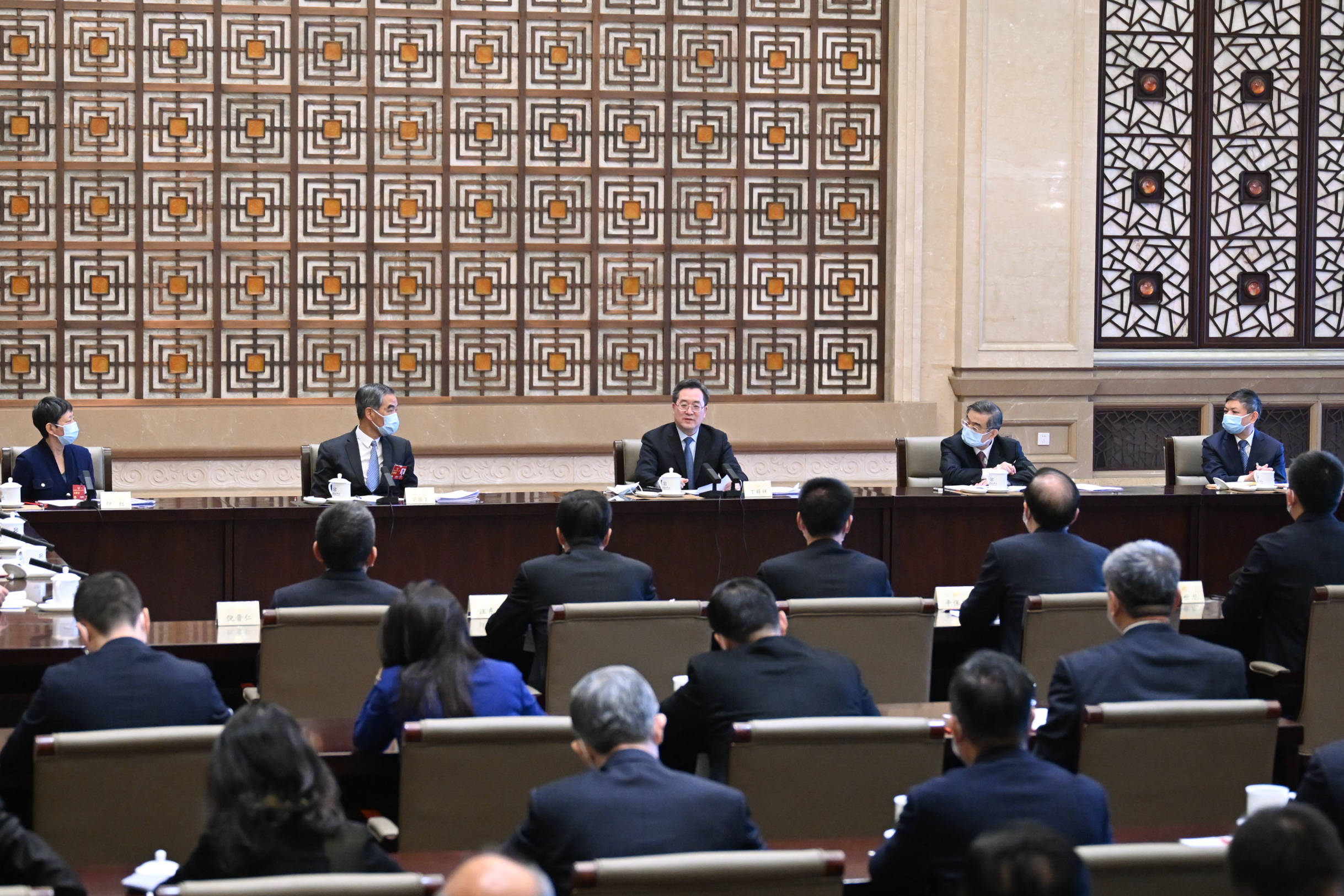 3月6日,中共中央政治局常委、中央辦公廳主任丁薛祥看望出席全國政協(xié)十四屆一次會議的環(huán)境資源界委員并參加討論。 新華社記者 謝環(huán)馳 攝