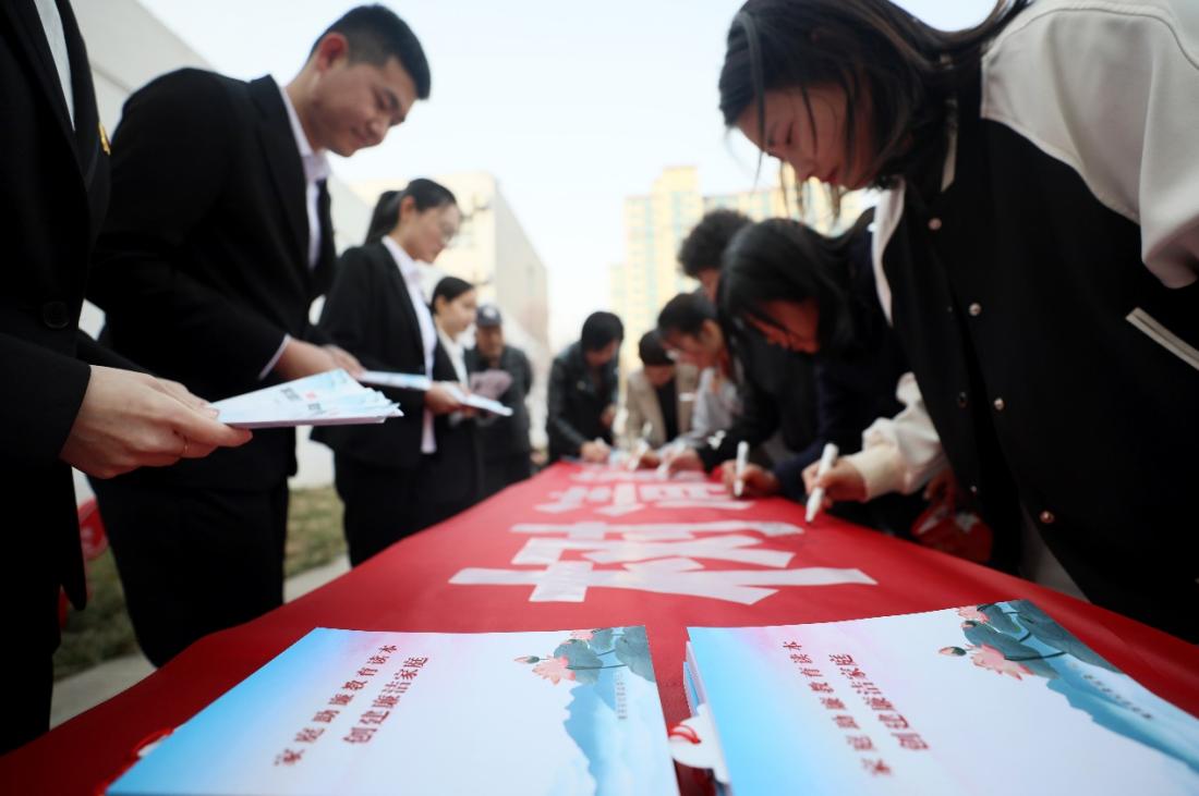 圖為隆堯縣紀委監委組織女干部、群眾在“展巾幗風采 樹清廉家風”倡議條幅上簽字承諾。