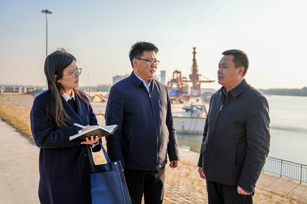 圖為濟寧市紀委監委黨風政風監督室干部正在實地了解黃河下游生態保護和高質量發展責任落實情況。房體朔 攝