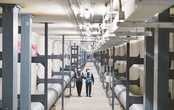 運維人員在地下綜合管廊進行巡檢。(雄安集團基礎建設公司供圖)