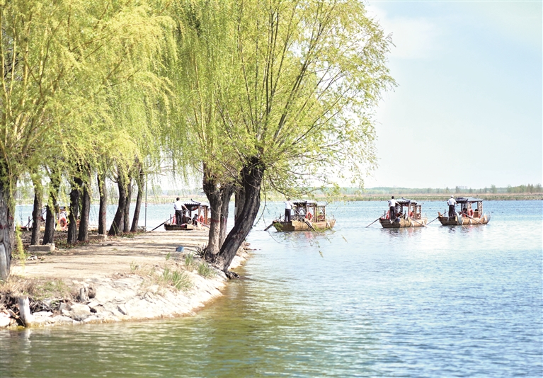 碧波蕩漾,鳥翔魚躍,新葦吐綠。4月的白洋淀,淀水清亮,景色怡人。近日,河北雄安新區安新縣文化和旅游局發布公告,白洋淀景區定于4月16日開始運營。不少游客通過官方預約平臺來到白洋淀,游覽領略水淀春日風光。