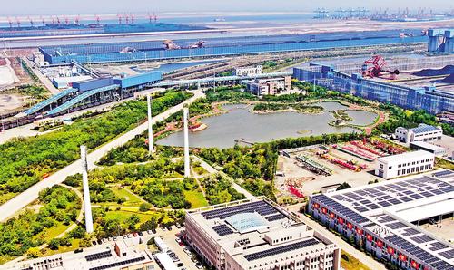 5月12日,航拍下的黃驊港煤炭港區(qū)內(nèi)景色。如今這里已成為一座鳥語(yǔ)花香的“海岸花園”。河北日?qǐng)?bào)記者 張 昊攝