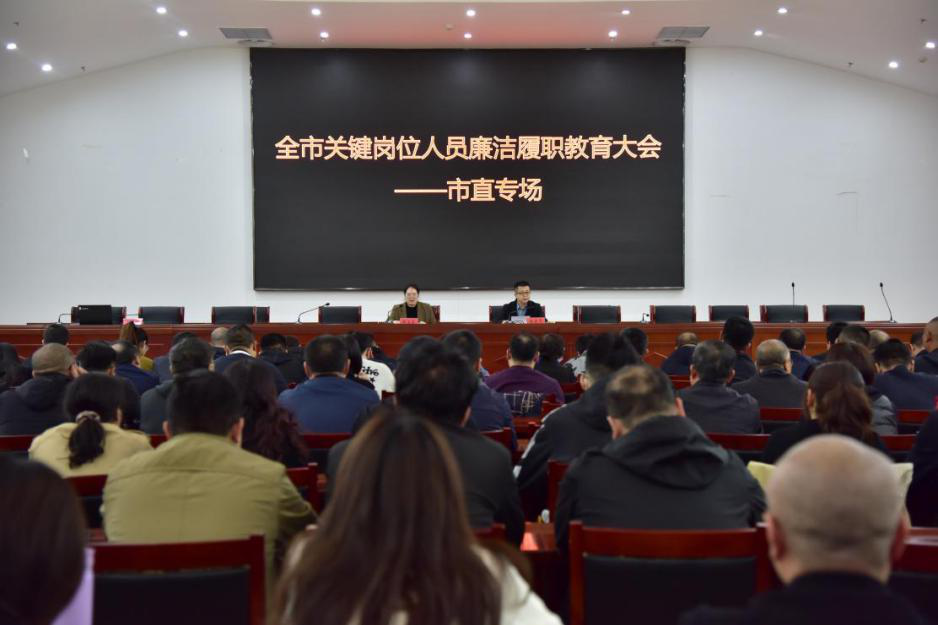 圖為在廉潔履職教育大會上,對關鍵崗位人員進行廉政教育。