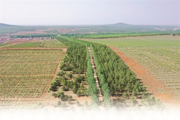 70多年來,山西省右玉縣干部群眾持續不斷植樹造林,創造了將“不毛之地”變成“塞上綠洲”的生態奇跡。圖為夏日時節,右玉縣森林、村落、農田組成一幅美麗的生態畫卷。 新華社記者 詹彥 攝
