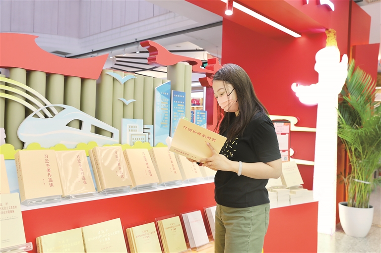 圖為近日,讀者在北京圖書大廈翻閱《習近平著作選讀》。北京圖書大廈 供圖