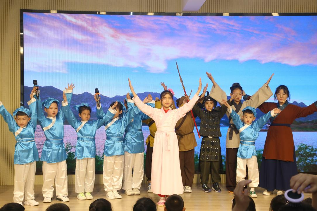 昌黎縣紀委監(jiān)委聯合該縣教育局等部門開展廉潔文化系列演出。圖為少年參演話劇《木蘭還鄉(xiāng)》。