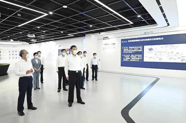 7月5日至7日,中共中央總書記、國家主席、中央軍委主席習近平在江蘇考察。這是6日下午,習近平在南京市考察紫金山實驗室。新華社記者 謝環馳 攝