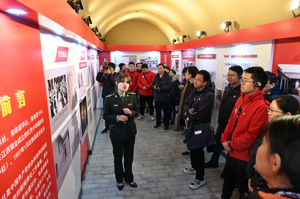 圖為2023年4月,新華社黨校組織春季期進修班和青干班學員在延安新華社舊址重溫入黨初心,激勵履行職責使命。高增雙 攝