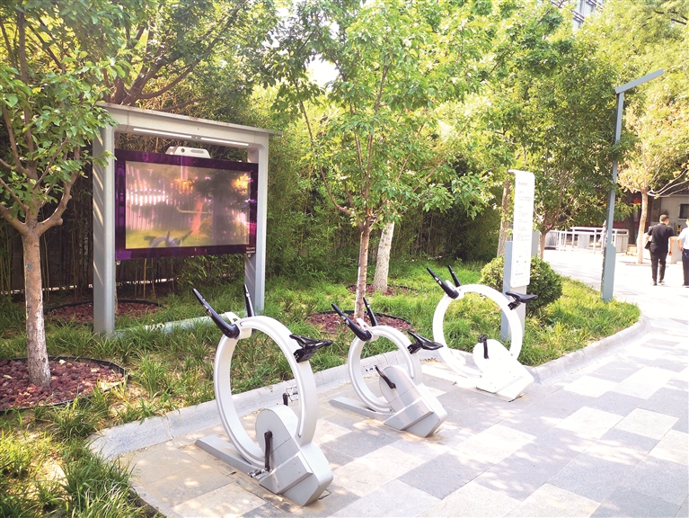 北京市西城區(qū)西單體育游園內(nèi)的智能健身設(shè)備。中央紀(jì)委國家監(jiān)委網(wǎng)站 王雅婧 攝