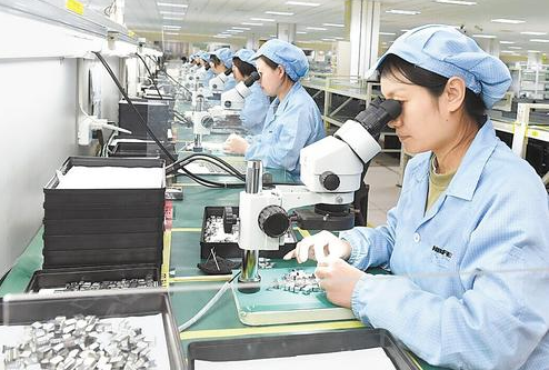 5月9日,在位于石家莊市鹿泉區的河北遠東通信系統工程有限公司,員工在生產線上進行作業。(本報資料片)河北日報記者 史晟全攝