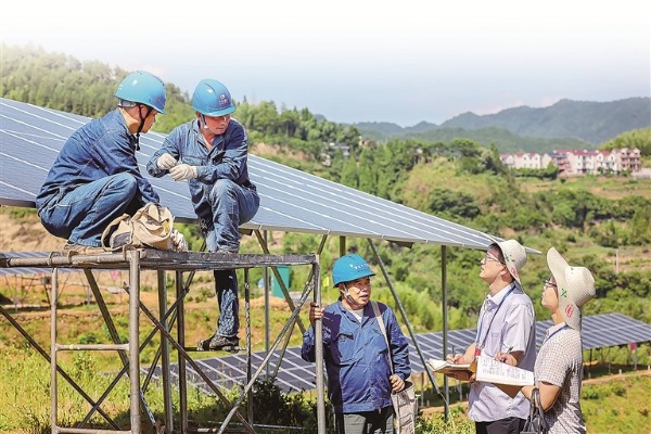 浙江省淳安縣紀委監(jiān)委緊盯重點項目強化監(jiān)督,為穩(wěn)妥有序推進“雙碳”工作提供堅強紀律保障。圖為該縣紀檢監(jiān)察干部在中洲鎮(zhèn)樟村集中式農光互補項目走訪了解相關情況。謝航凱 攝