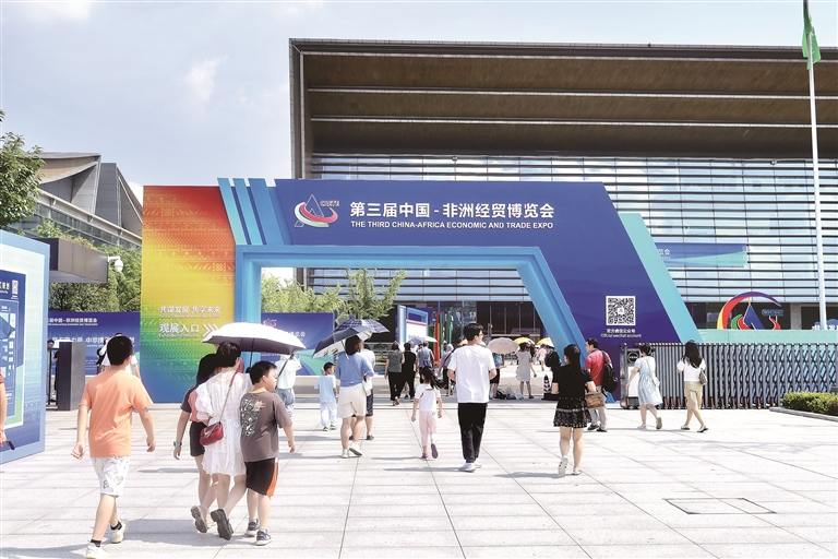 新時代以來,中國高質量共建“一帶一路”,得到世界上超過四分之三的國家和數十個國際組織積極支持,開辟了一條合作共贏、共建共享的文明發展新道路。圖為湖南長沙,第三屆中國—非洲經貿博覽會舉行。圖片來源:視覺中國