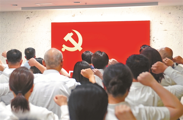 12句話、80個字,句句千鈞、字字入心,凝練著中國共產黨人的接續奮斗史。百年來一代代共產黨人身行力踐,將入黨誓詞蘊含的精神融入追求崇高理想、獻身偉大事業的實踐之中。夏明翰、方志敏等戰火紛飛中挺立的英雄,焦裕祿、時傳祥等建設年代里成長的模范,李保國、鐘南山等改革時代涌現的典型……從一個個名字中,我們能真切感受中國共產黨人以行動詮“誓”、以生命踐“誓”,他們忠誠篤定的信念散發著震撼人心的光芒。