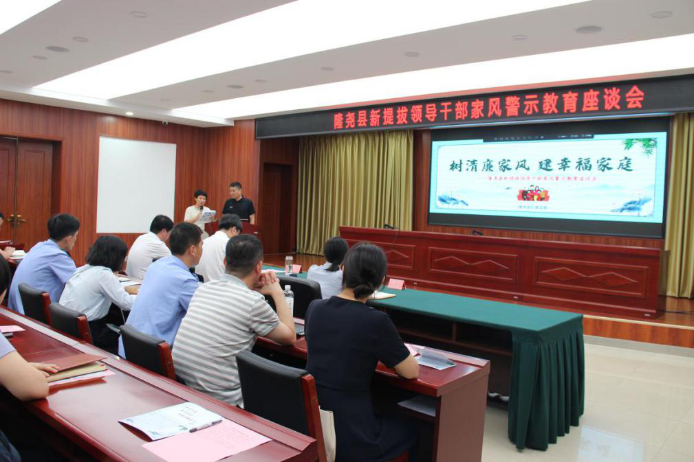 近日,為進一步加強干部隊伍建設、共樹良好家風,隆堯縣紀委監委組織開展新提拔領導干部及家屬家風警示教育座談會。會上,領導干部及家屬們共同觀看了警示教育片,聆聽《樹清廉家風 建幸福家庭》廉政報告,領導干部及家屬代表會上宣讀了寫給對方的廉潔寄語。
