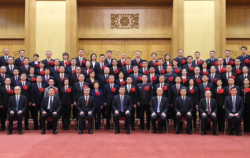 11月6日,黨和國家領導人習近平、蔡奇、李希等在北京人民大會堂會見全國“楓橋式工作法”入選單位代表。 新華社記者 李學仁 攝